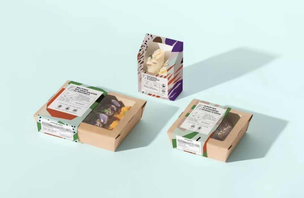 這是一家輕食店,該輕食包裝采用牛皮紙的紙質(zhì)鏤空設(shè)計(jì),同時(shí)搭配清新明亮的顏色;略顯“抽象”的紋理圖案設(shè)計(jì),代表著各種健康食材的成分。在凸顯該產(chǎn)品的品牌理念和屬性特點(diǎn)之外,也使該包裝更加引人注目。
